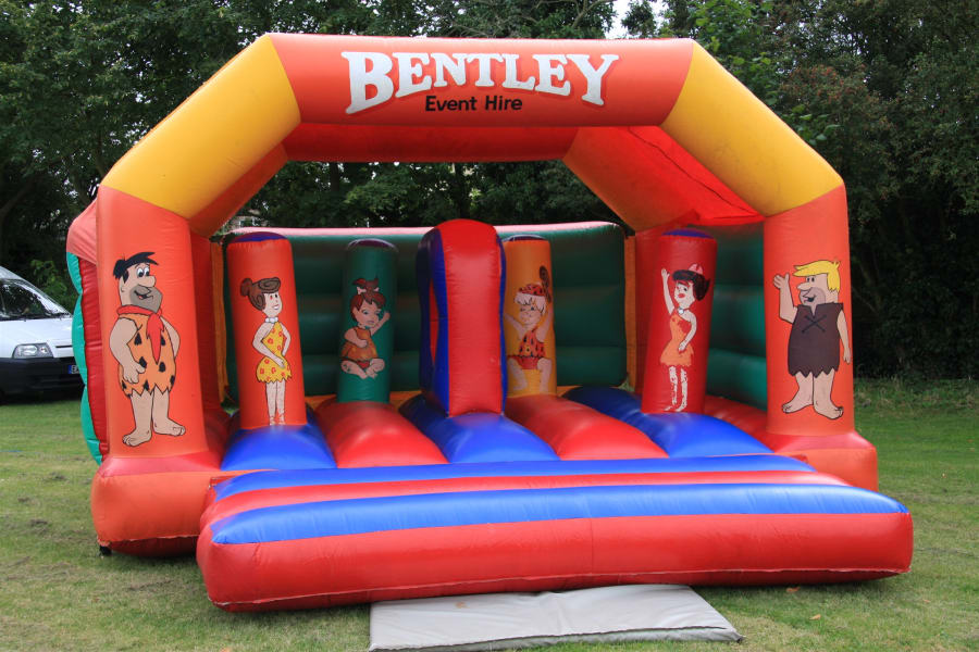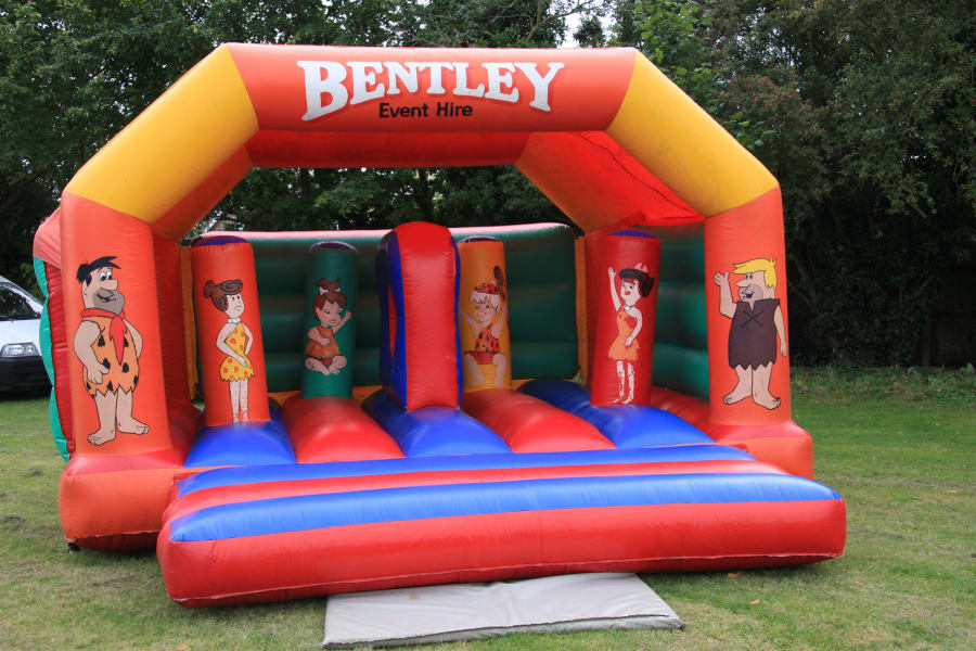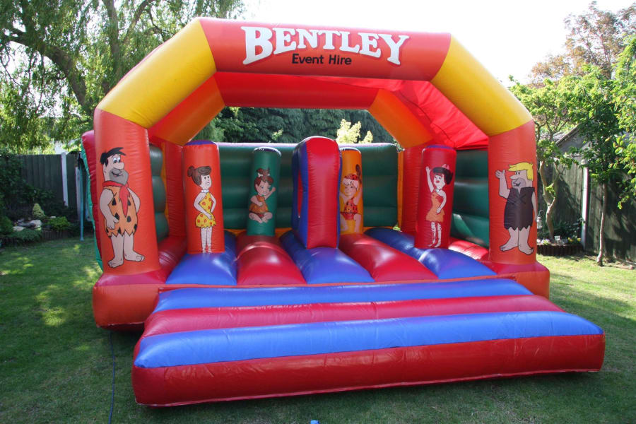 This castle is themed in the famous Flintstones characters from the cartoons, the castle has bish-bash pillars including a circular one the children can climb through, really good fun activity castle for the children. Comes with rain cover.