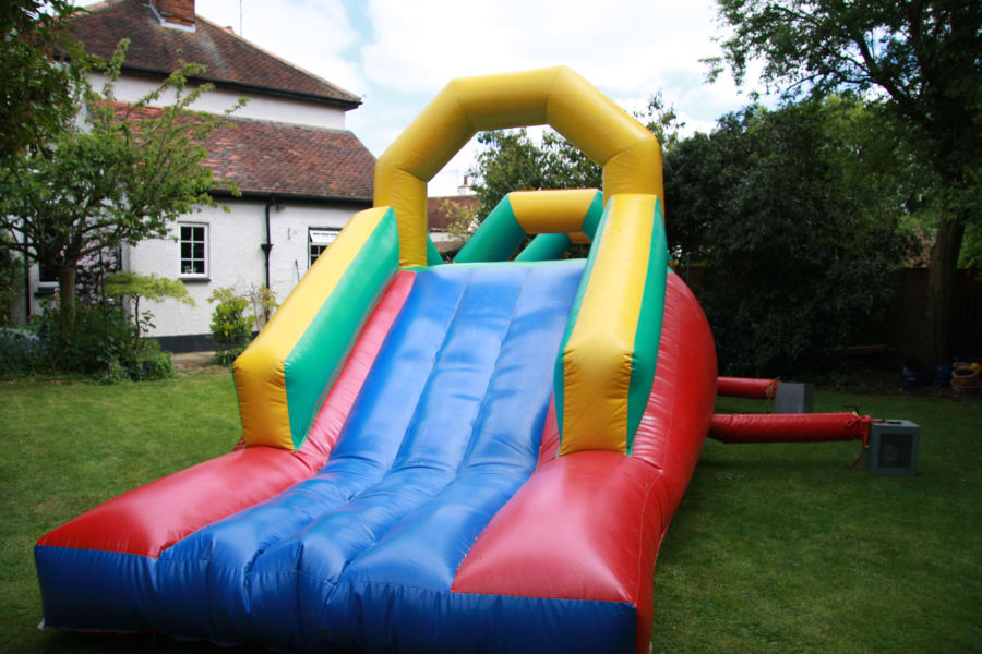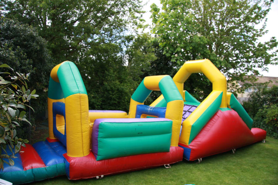 This unit is a 2 piece Assault Course (predominately coloured in red & blue) which is suitable for children from the age of 3 upto early teens. There are numerous activities throughout including climbing, jumping, bouncing & sliding. It will certainly keep the children busy and active. To book please contact by phone to avoid disappointment.
