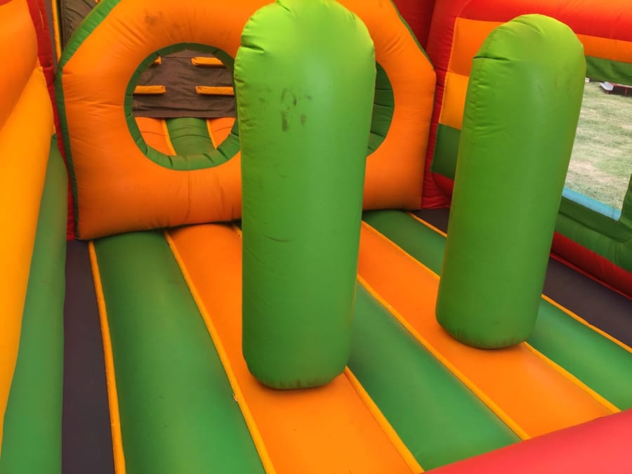Our Rainbow race assault course or obstacle course is brilliant fun, the children start running through this extra long unit battering past the bish bash pillars then through the port holes before the climb upto the slide. This unit is really striking to look at with the bright colours. The assault course also has the added benefit of a roof cover.