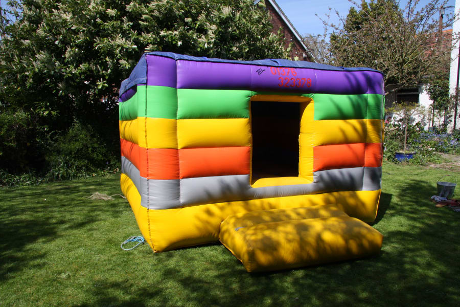 This bouncy castle is the smallest of our units and is suitable for children from 2 years of age upwards. It is predominately yellow in colour and has a doorway entrance and a internal door netting that provides added safety for the younger users as it stops them rollng off the unit. The extra piece of mind this unit provides allows you to relax and enjoy the day yourself. To book please contact by phone to avoid disappointment.